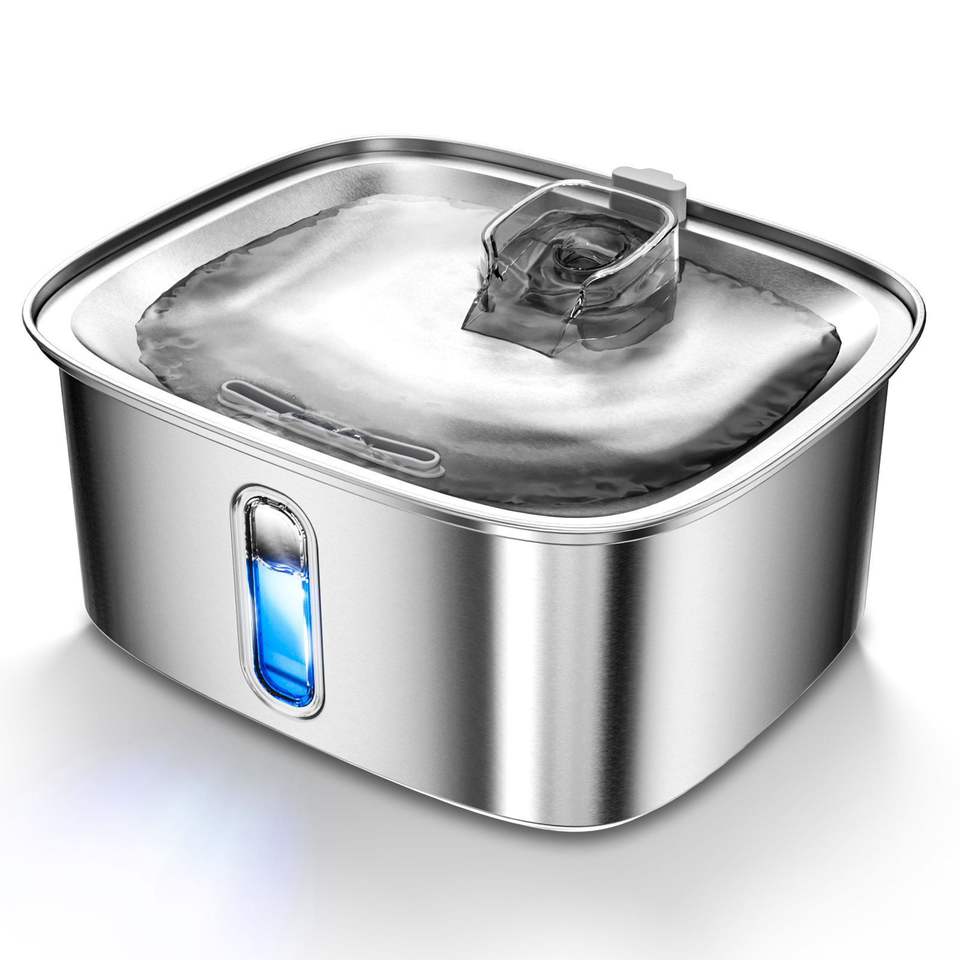 น้ำพุสำหรับสัตว์เลี้ยงสีเทาพร้อมเซ็นเซอร์