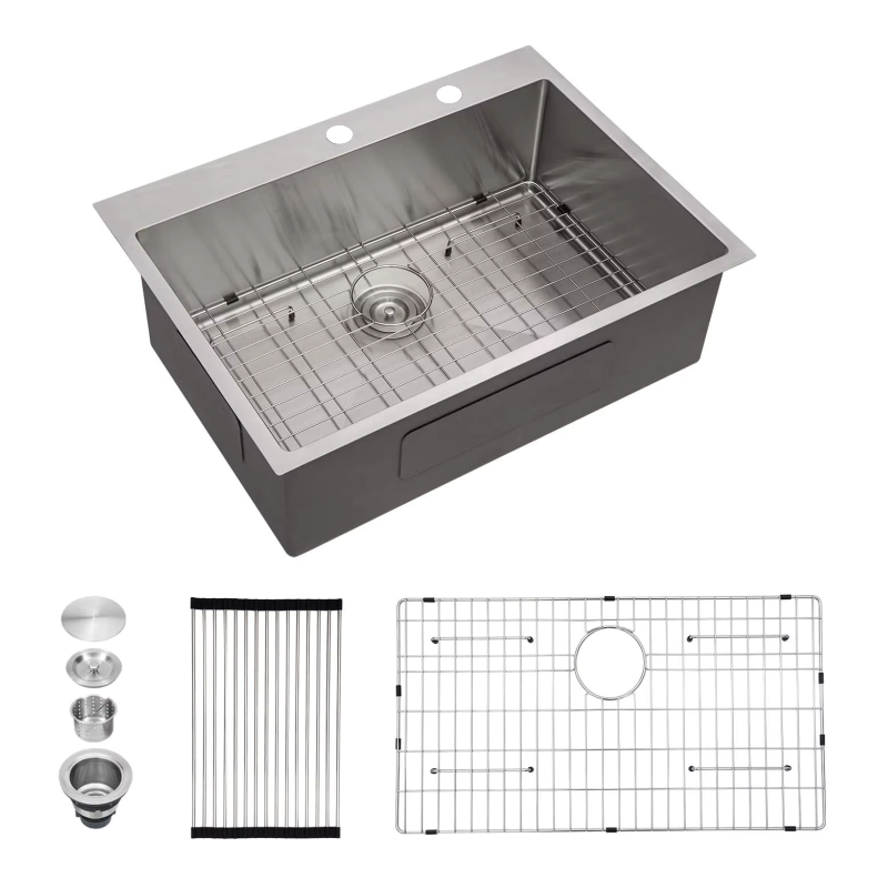 อ่างล้างจานสเตนเลส304เดี่ยวแบบอัจฉริยะมาตรฐานไม่มีก๊อกน้ำอ่างล้างจานห้องครัวสมัยใหม่