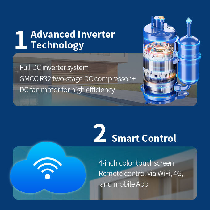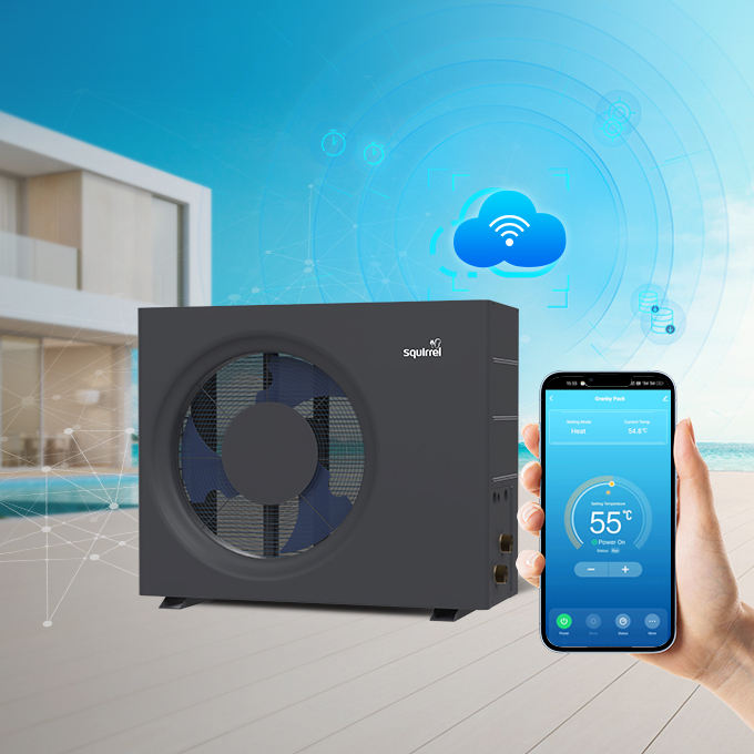 ปั๊มความร้อนสระว่ายน้ำอัจฉริยะ R32 DC Inverter พร้อมรีโมทคอนโทรลผ่านแอพ/ไวไฟ/4G ทำงานเงียบ