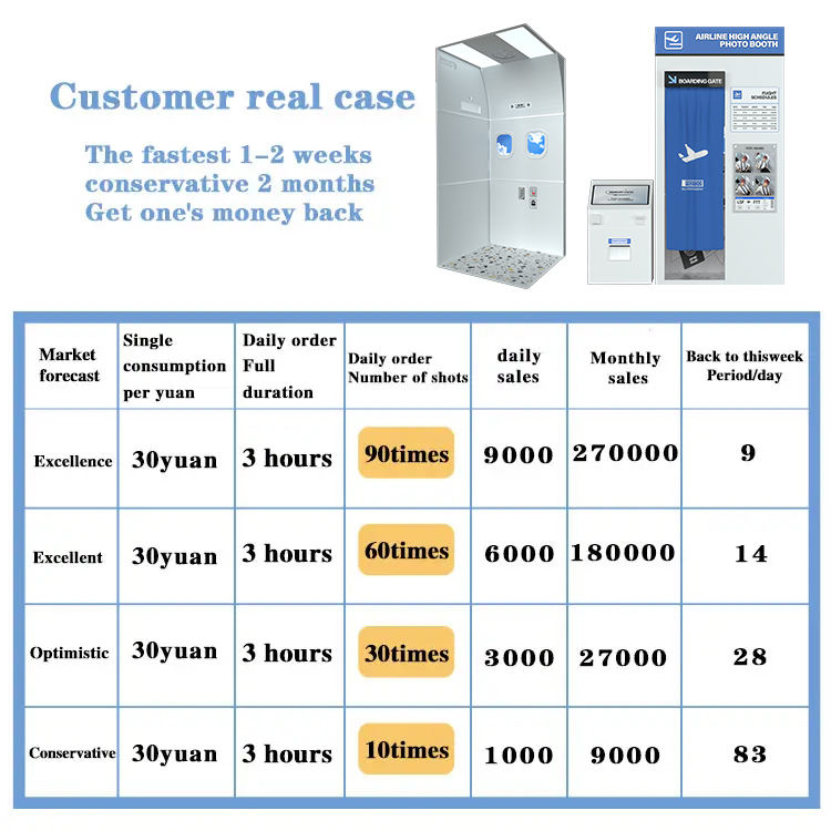 บูธถ่ายภาพระบบดิจิทัลระบบอัจฉริยะงานตามสั่งเทศกาลบูธถ่ายภาพบริการตนเองตู้โดยสารเครื่องบิน