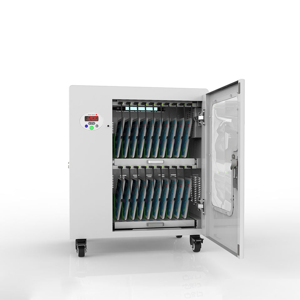 สมาร์ทจับเวลาแท็บเล็ตชาร์จ U-V-C Sanitizing ชาร์จรถเข็นตู้