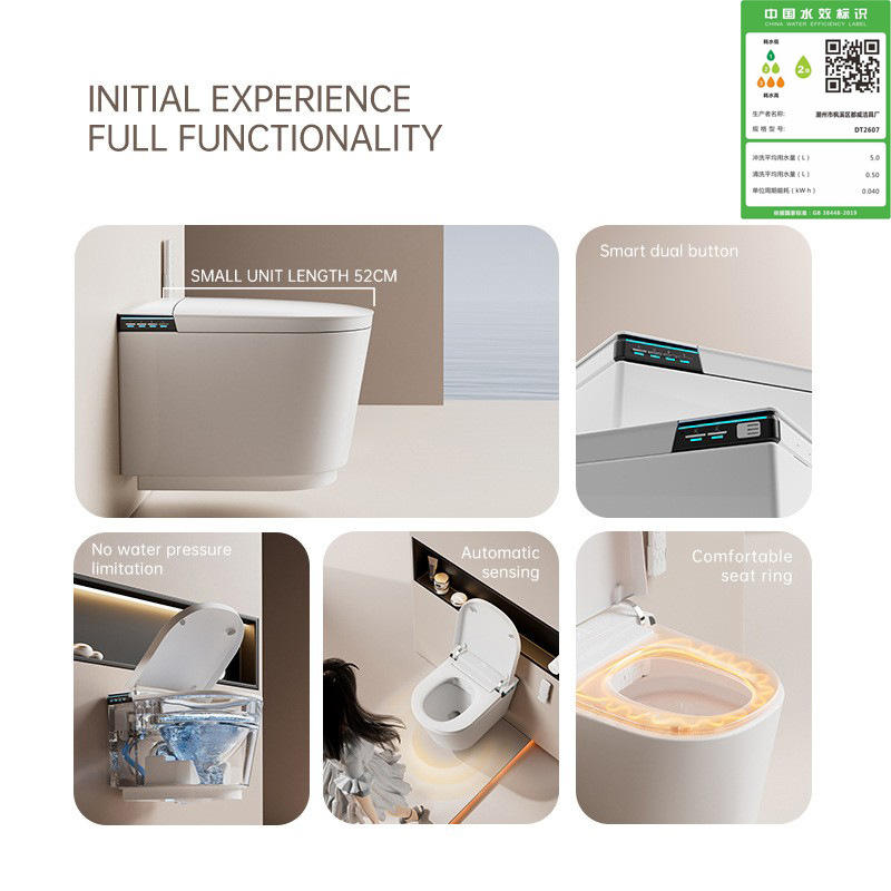 โถสุขภัณฑ์อัจฉริยะติดผนัง 52 ซม. ถังน้ำแบบซ่อน เหมาะสำหรับอพาร์ทเมนต์ขนาดเล็ก