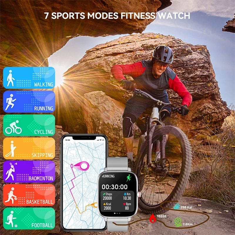 นาฬิกาอัจฉริยะสำหรับผู้ชาย,สมาร์ทวอทช์สายรัดข้อมือกันน้ำสำหรับเล่นกีฬาบลูทูธสามารถโทรได้สำหรับผู้หญิงนาฬิกาดิจิตอลสำหรับโทรศัพท์แอนดรอยด์และ IOS