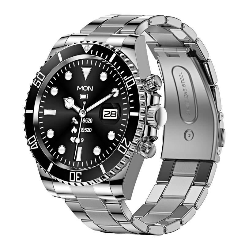 สมาร์ทวอทช์สำหรับโทรศัพท์แอนดรอยด์รับสาย SMS นาฬิกาอัจฉริยะรองรับ iPhone บลูทูธสแตนเลสสตีลฟิตเนส