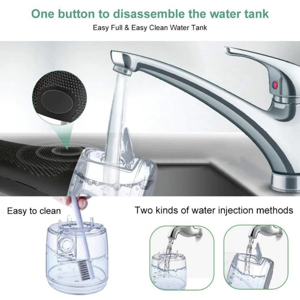 เครื่องทำความสะอาดช่องปากแบบพกพาไร้สาย พร้อมหัวฉีด 6 แบบ และแปรง 2 ชิ้น