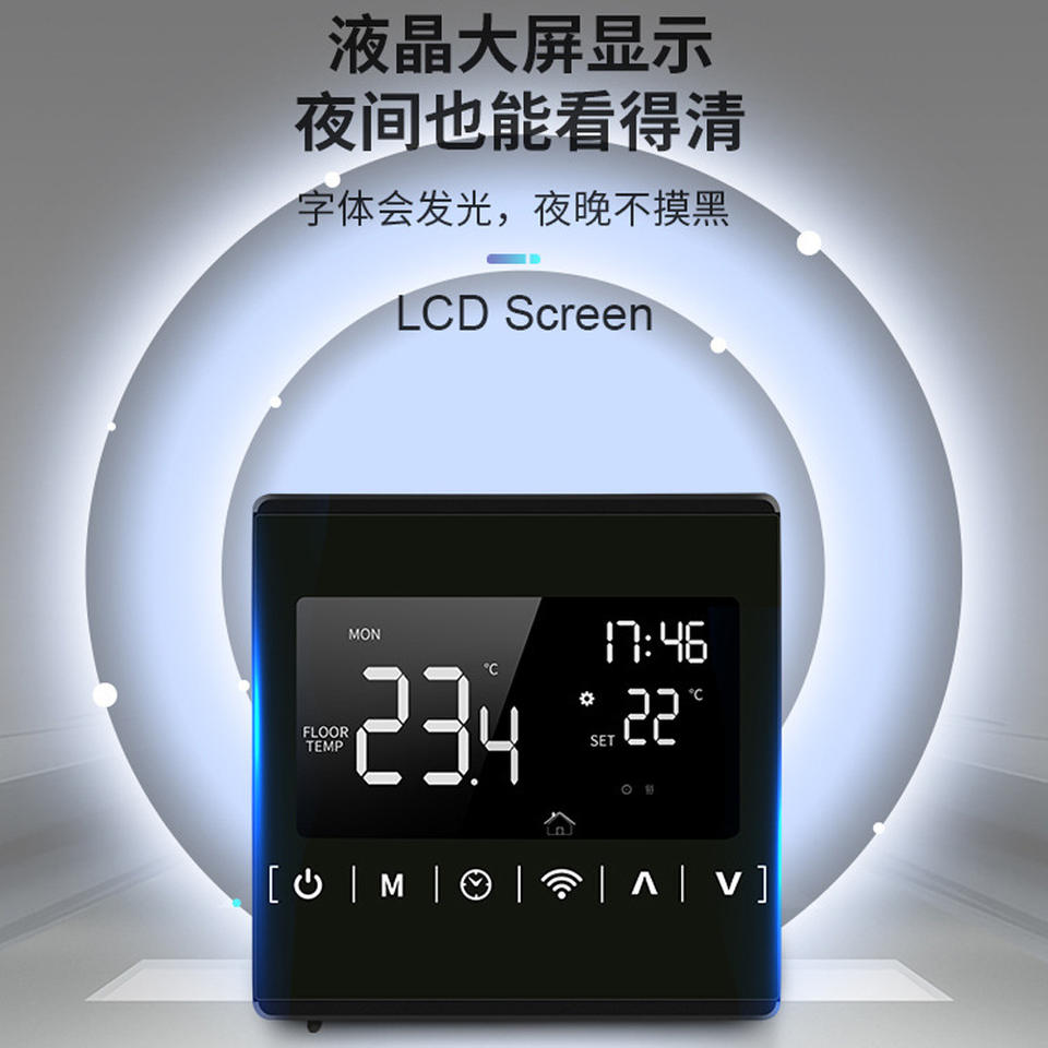 เทอร์โมสตัทอินเตอร์เน็ตไร้สายอัจฉริยะจอแสดงผลดิจิตอล 8.5x8.5 มม. ตัวควบคุมอุณหภูมิอิเล็กทรอนิกส์ความแม่นยำสูงสำหรับเครื่องทำความร้อนภายในบ้าน