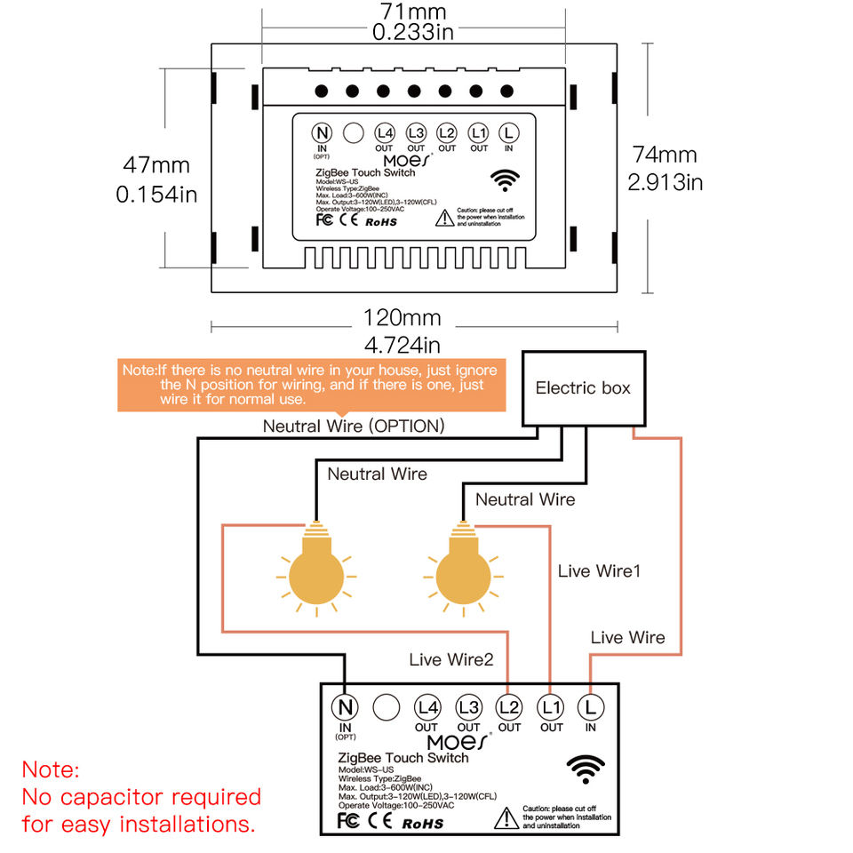 ชื่อผลิตภัณฑ์:ZigBee Z-WAVE สวิตช์ไฟอัจฉริยะแบบสัมผัสติดผนัง