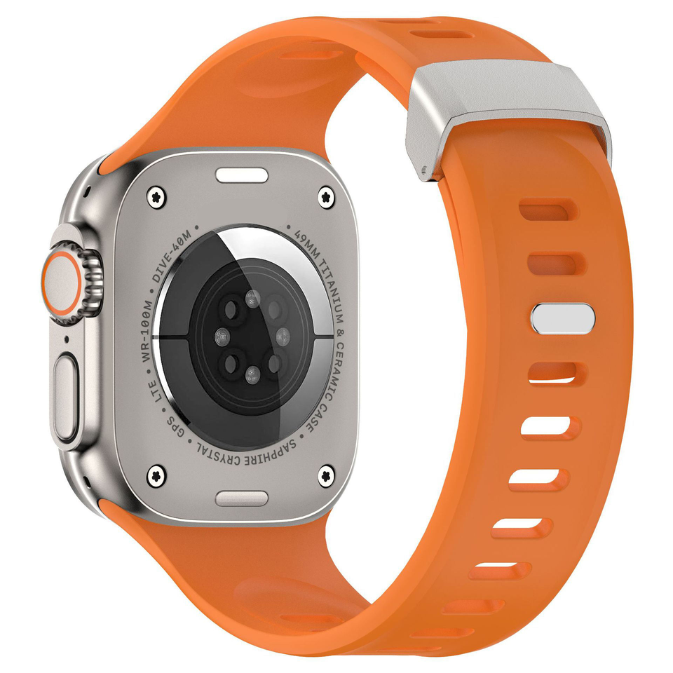 สายหนังแบบแม่เหล็กพับได้สำหรับ Apple Watch ขนาด42-49มม.-สีส้ม