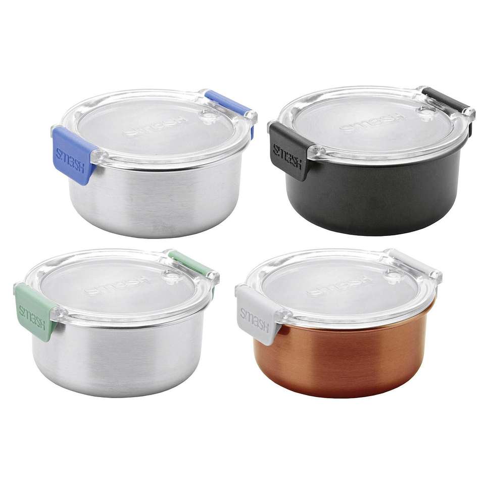 กล่องเก็บอาหารสแตนเลส Smash ชุด 4 ชิ้น พร้อมฝาปิด สำหรับเตรียมอาหารและขนม