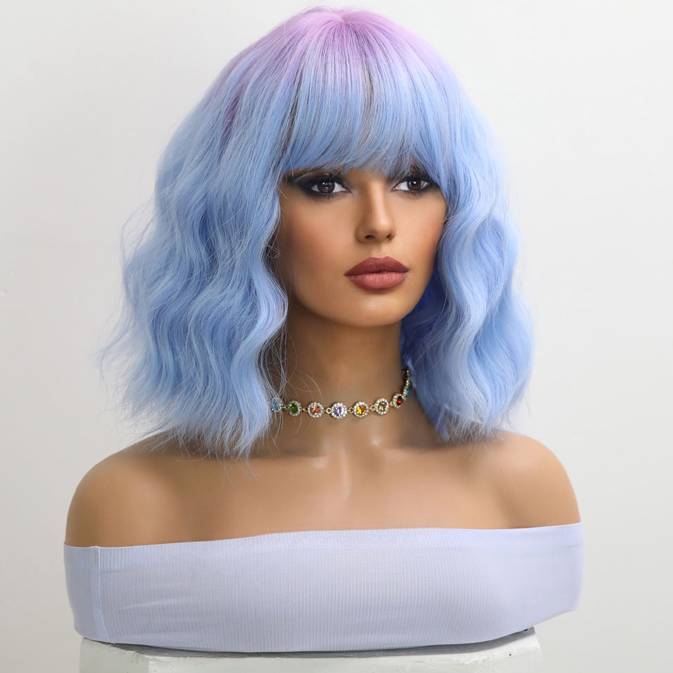 Smilco วิกผมบ๊อบไล่ระดับสีฟ้า-ม่วง-วิก SM039สังเคราะห์14นิ้วขั้นสูง