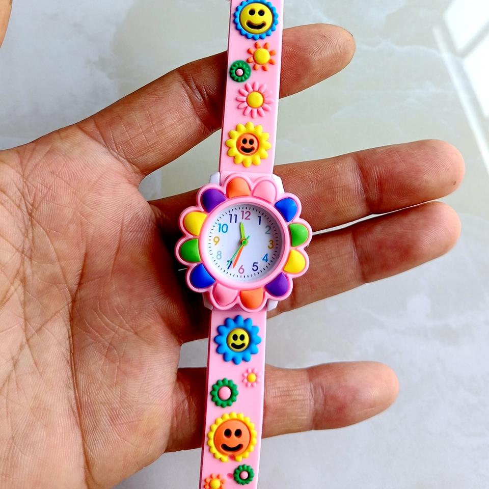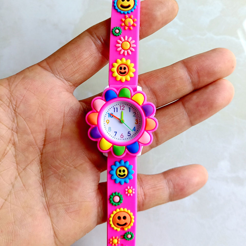 นาฬิกาควอตซ์สำหรับงานปาร์ตี้แฟชั่นสำหรับเด็กผู้หญิงนาฬิกาของขวัญสำหรับเด็กลายดอกเดซี่สีสันสดใส