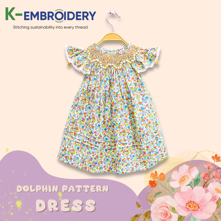 ชุดเดรสสำหรับเด็กผู้หญิงชุดเดรสยาวลายดอกไม้สีฟ้าแบบหลวมระบายอากาศได้ดีเป็นมิตรกับสิ่งแวดล้อมสำหรับฤดูร้อน
