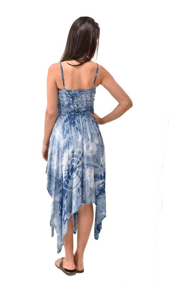 เดรสผ้าเรยอนย้อมสีครามแบบสโมค ลายไทได สไตล์โบฮีเมียน ฮิปปี้ แฟรี่