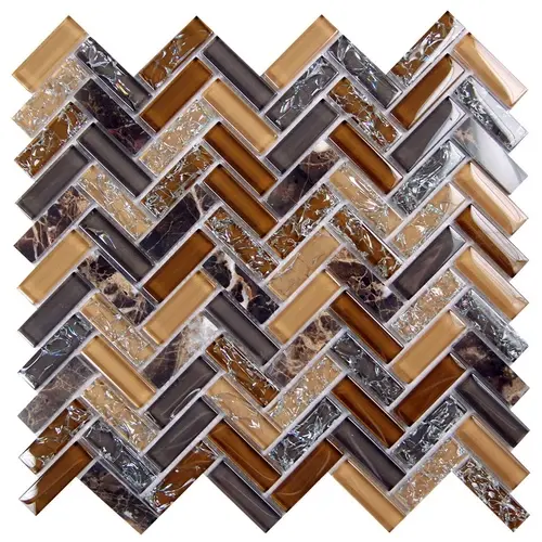 ชุดอุปกรณ์ยิงธนูผนังกระเบื้องโมเสคแก้วลายก้างปลาควันสีน้ำตาล