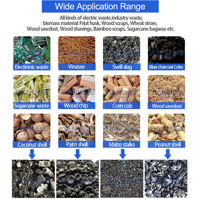 วัตถุดิบที่ใช้ได้:แกลบข้าว ขี้เลื่อย ไม้ กะลามะพร้าว เปลือกถั่ว ซังข้าวโพด ฯลฯ