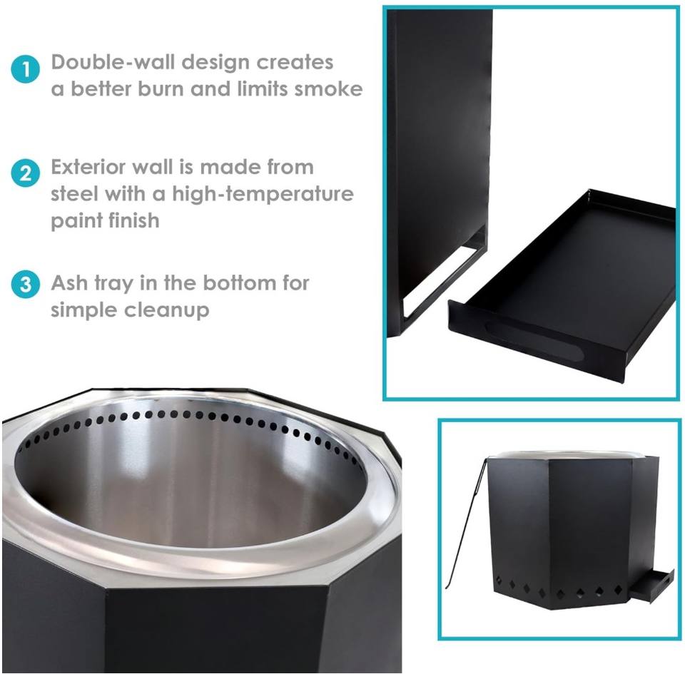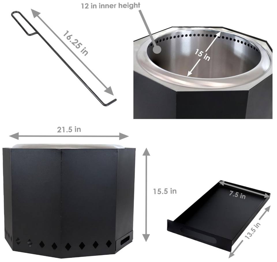 เตาไฟไร้ควันพร้อมช่องระบายอากาศแบบ Crosswave ขนาด 30" ลึก x 30" กว้าง x 20" สูง น้ำหนัก 22 ปอนด์ เตาไฟสำหรับกลางแจ้งเคลือบสีพร้อมฝาครอบป้องกัน