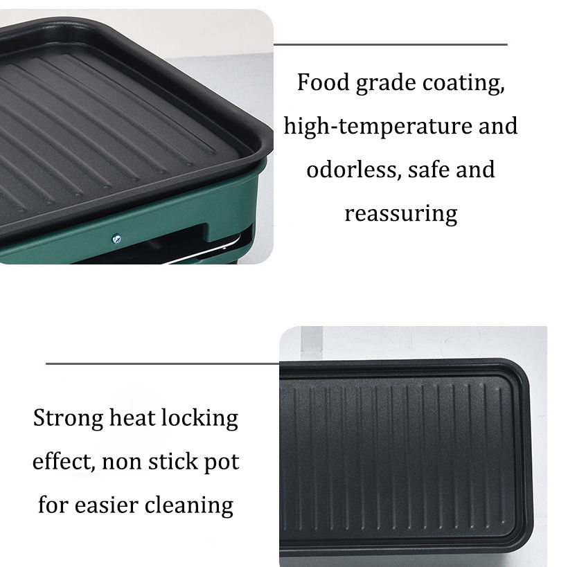 เตาบาร์บีคิวไฟฟ้าไร้ควันแบบตั้งโต๊ะ ทำจากอลูมิเนียมอัลลอยด์ ไม่ติดกระทะ รูปทรงสี่เหลี่ยม ไม่มีเตาในตัว
