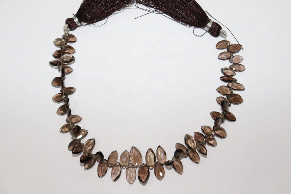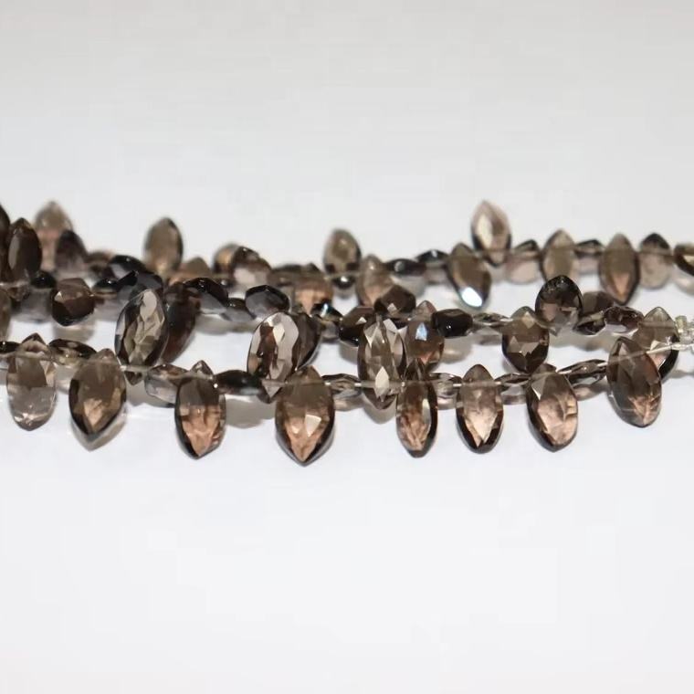 ลูกปัดสโมคกี้ควอตซ์ ทรงมาร์คีส์ เจียระไนเหลี่ยม