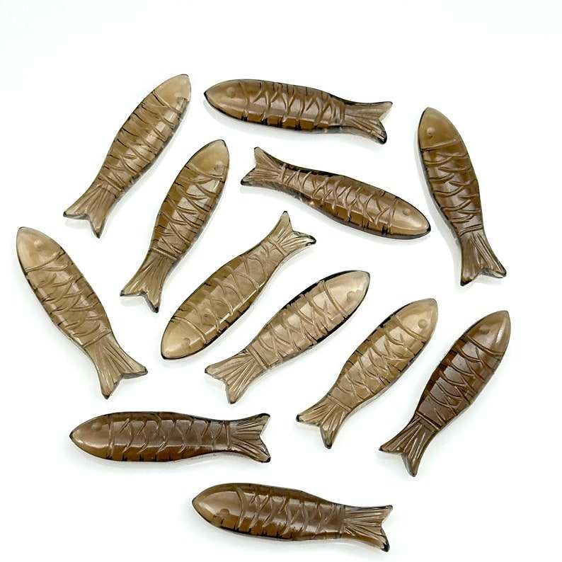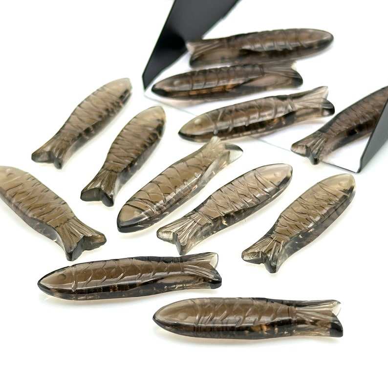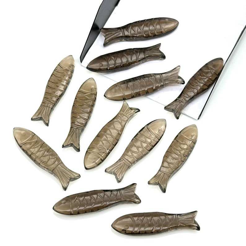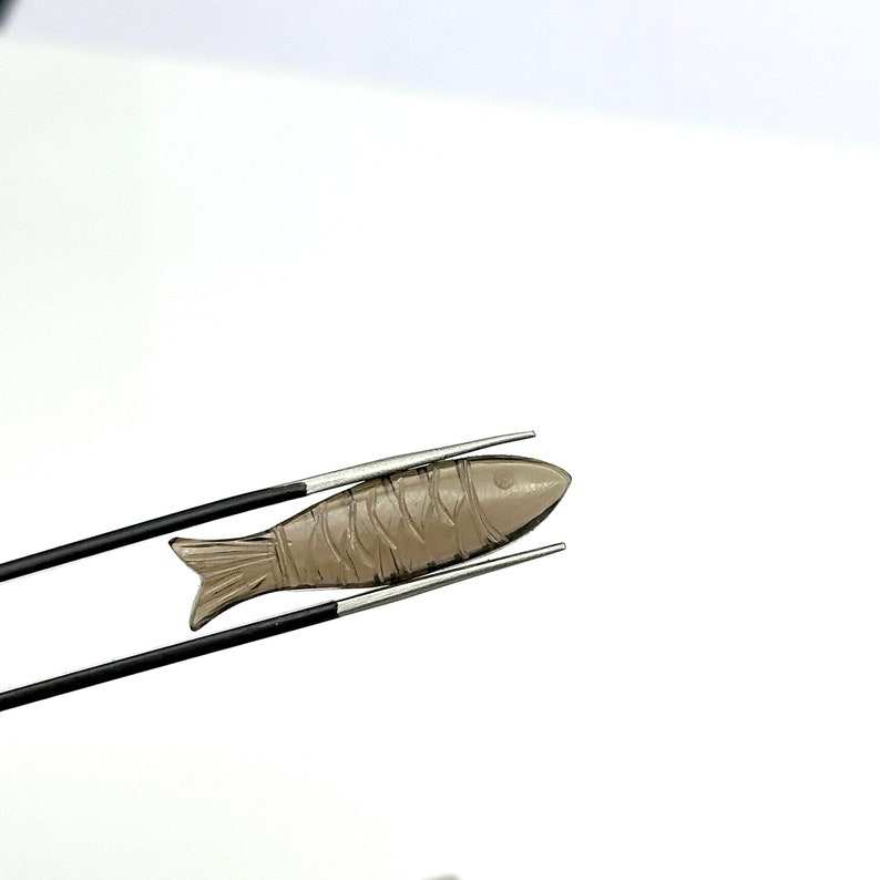 คริสตัลควอตซ์สโมคกี้รูปปลาแกะสลักด้วยมือ ทรงบริโอเล็ต ขนาด 30x10 มม.