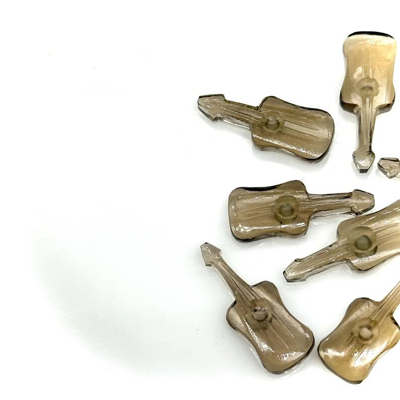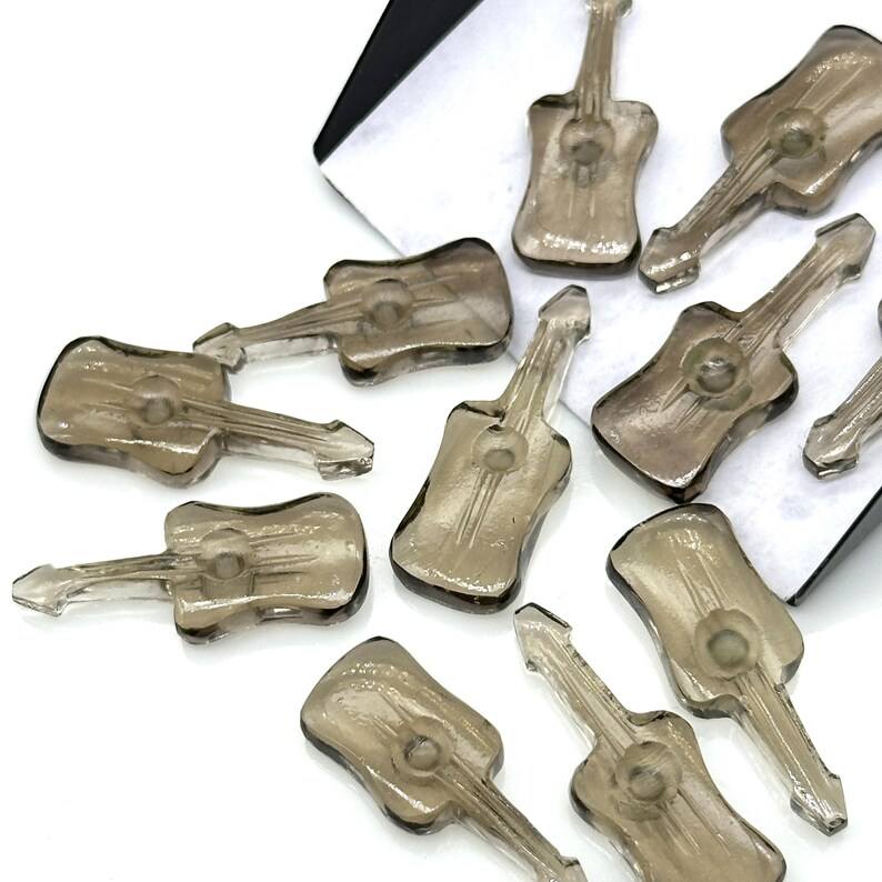 จี้หินควอตซ์สโมคกี้รูปทรงกีตาร์ขนาดเล็กแกะสลักด้วยมือ ขนาด 26 มม.