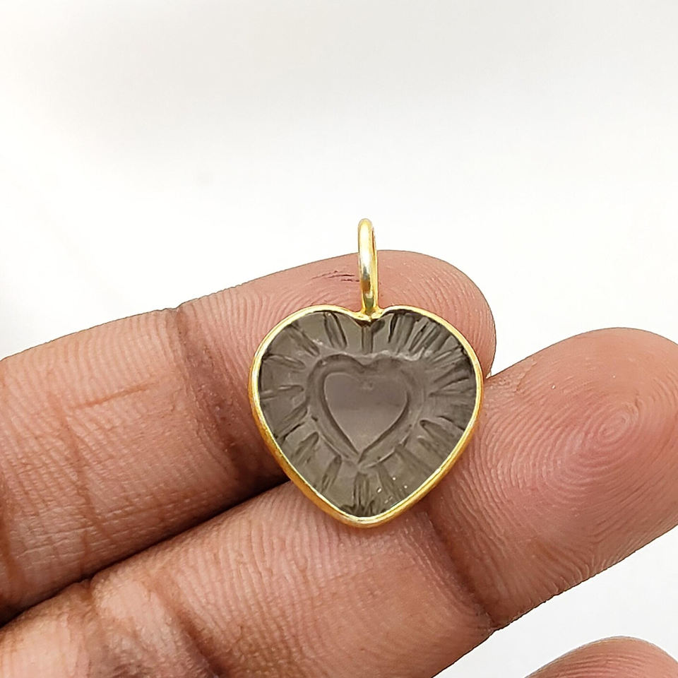 ชุดจี้925รูปหัวใจ15มม. สีควอทซ์สโมคกี้ชุบทองจี้ควอทซ์สโมคกี้ขายส่งมีเสน่ห์