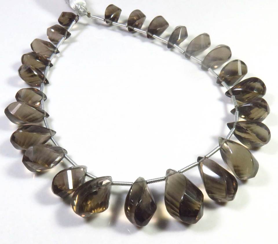 พลอยควอตซ์สโมคกี้ทรงหยดน้ำ ขนาด 10-17 มม. คุณภาพสูง สีน้ำตาลธรรมชาติ รูปทรงบิดเกลียว จำนวน 25 เม็ด ความยาว 9 นิ้ว สำหรับงาน DIY