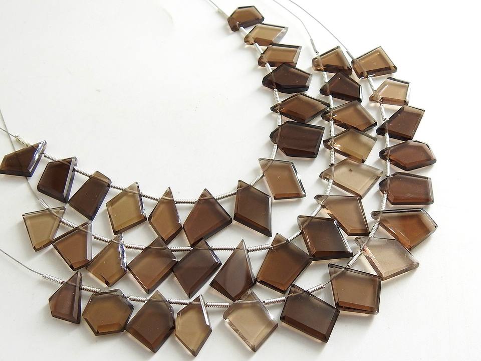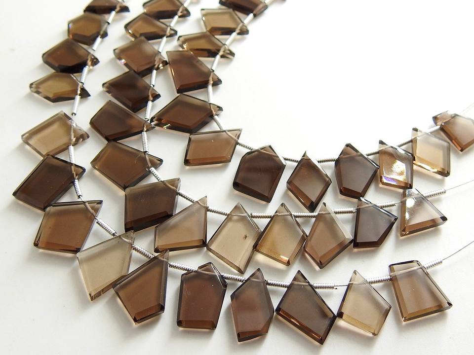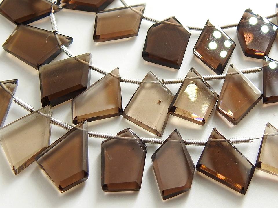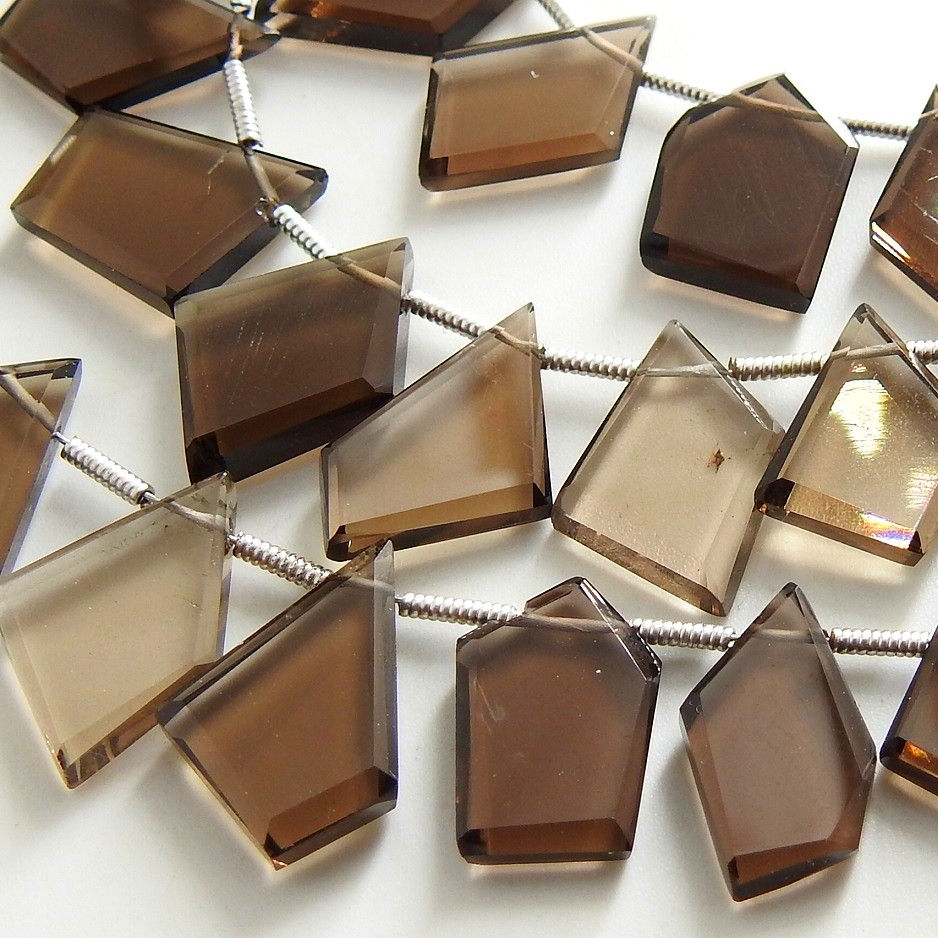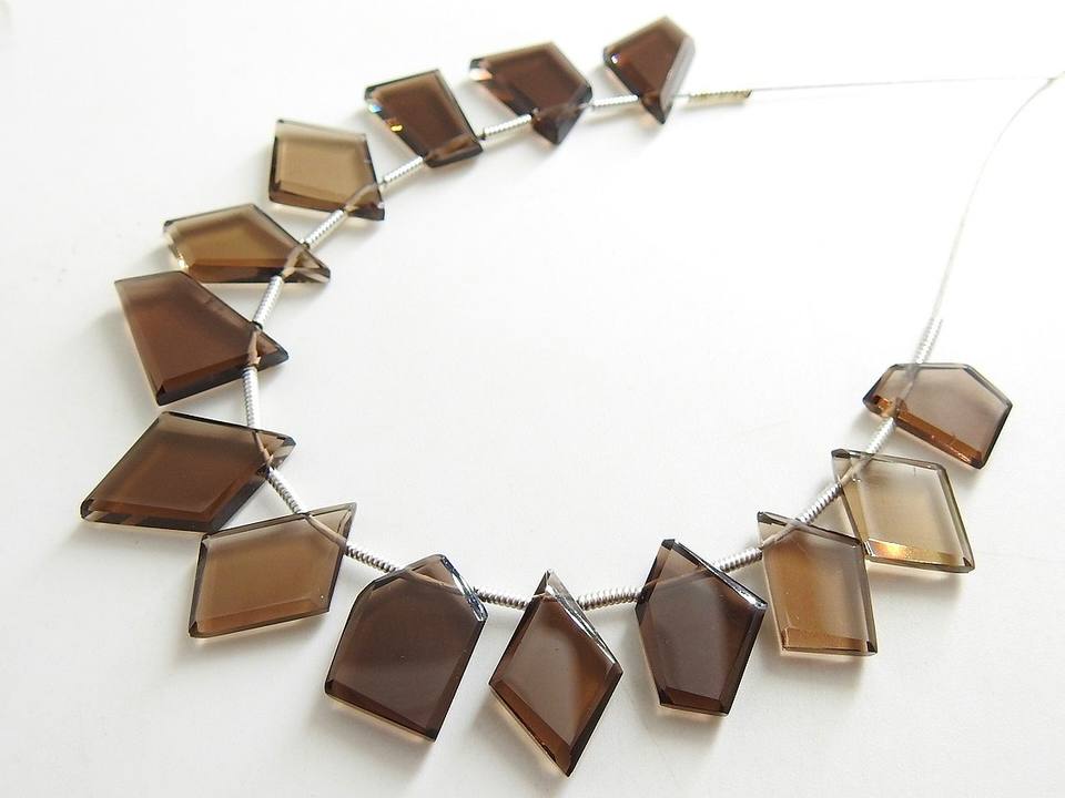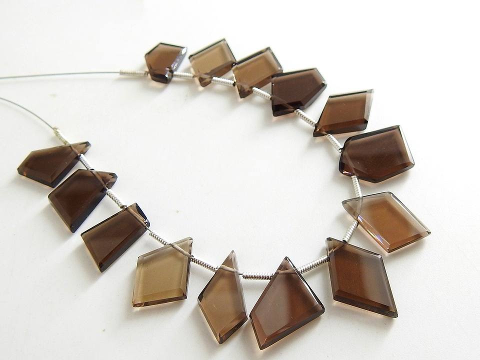มงกุฎรูปห้าเหลี่ยมเพชรพลอยควอทซ์สโมคกี้ทรงแฟนซีมงกุฎรูปห้าเหลี่ยมทรงมงกุฎตัดเหลี่ยมเพชรพลอยลูกปัด13ชิ้นยาว10-15มม.