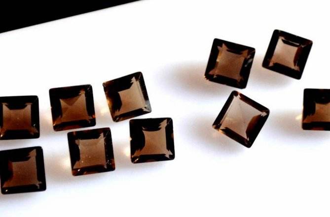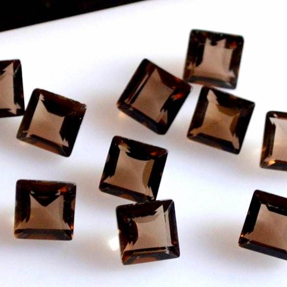 พลอยควอตซ์สโมคกี้ธรรมชาติแบบขายส่ง รูปทรงเหลี่ยมเจียระไน ขนาด 5-10 มม. รับรองโดยบุคคลที่สาม ไม่มีรู สำหรับทำเครื่องประดับ