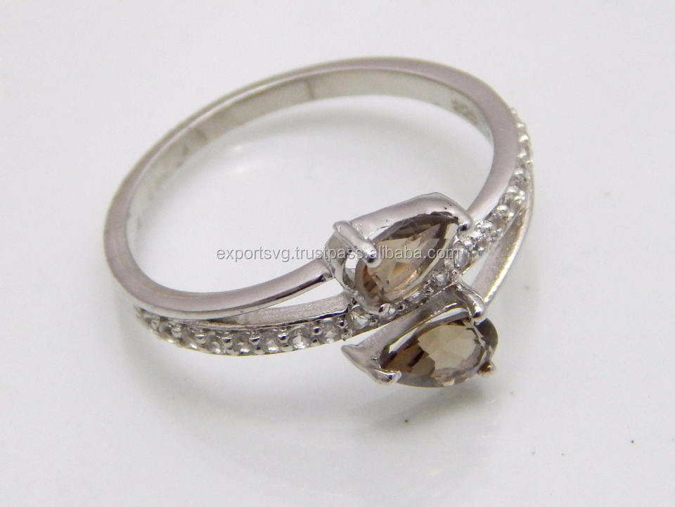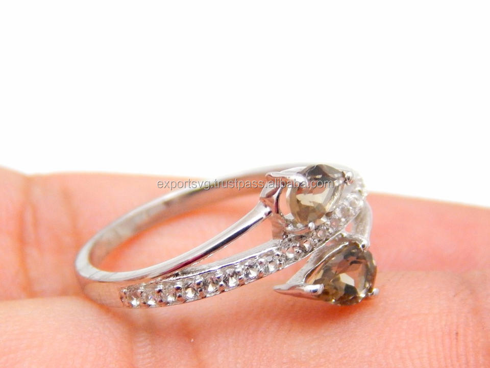 แหวนแต่งงานเงินแท้ 925 ประดับพลอยสโมคกี้ควอตซ์คลาสสิกสำหรับผู้หญิง