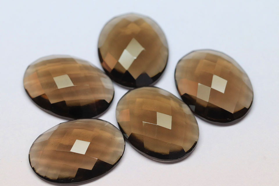 สโมคกี้ควอทซ์วงรีทรงรีกระดานหมากรุกแบบแบนหินอัญมณีด้านหลังเรียบโรสตัดหลวมสำหรับทำเครื่องประดับควอทซ์ควันขนาด10x8มม. เพื่อ20x15mm