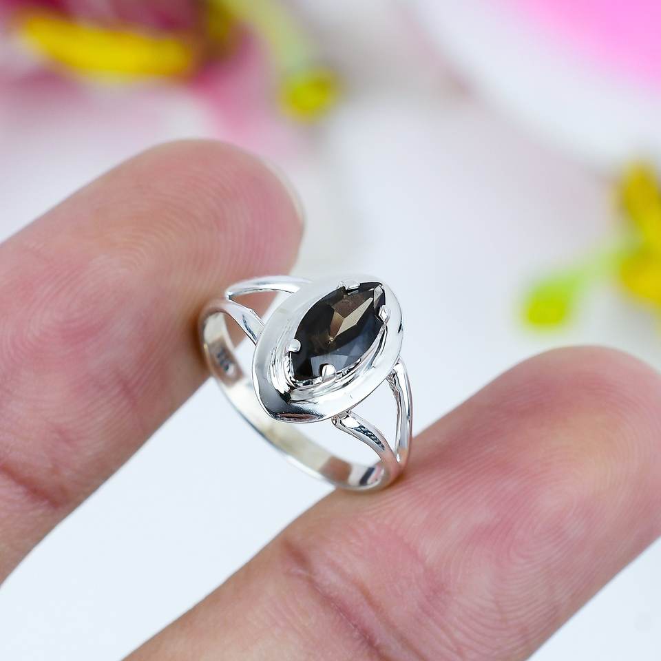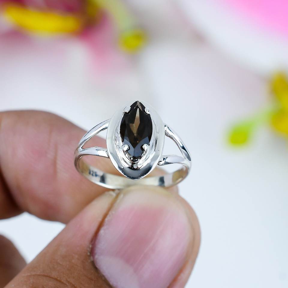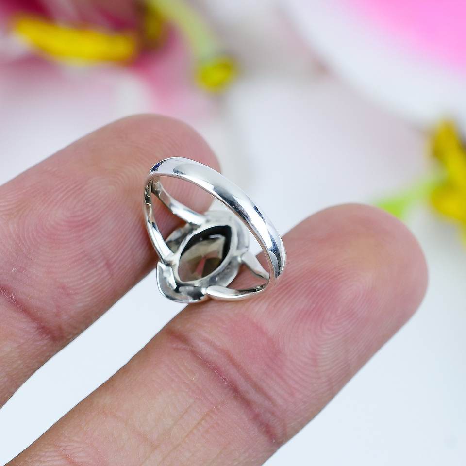 แหวนเงินแท้ 925 ประดับด้วยพลอยควอตซ์สโมคกี้ทรงรี ดีไซน์หรูหรา แหวนวงเปิด