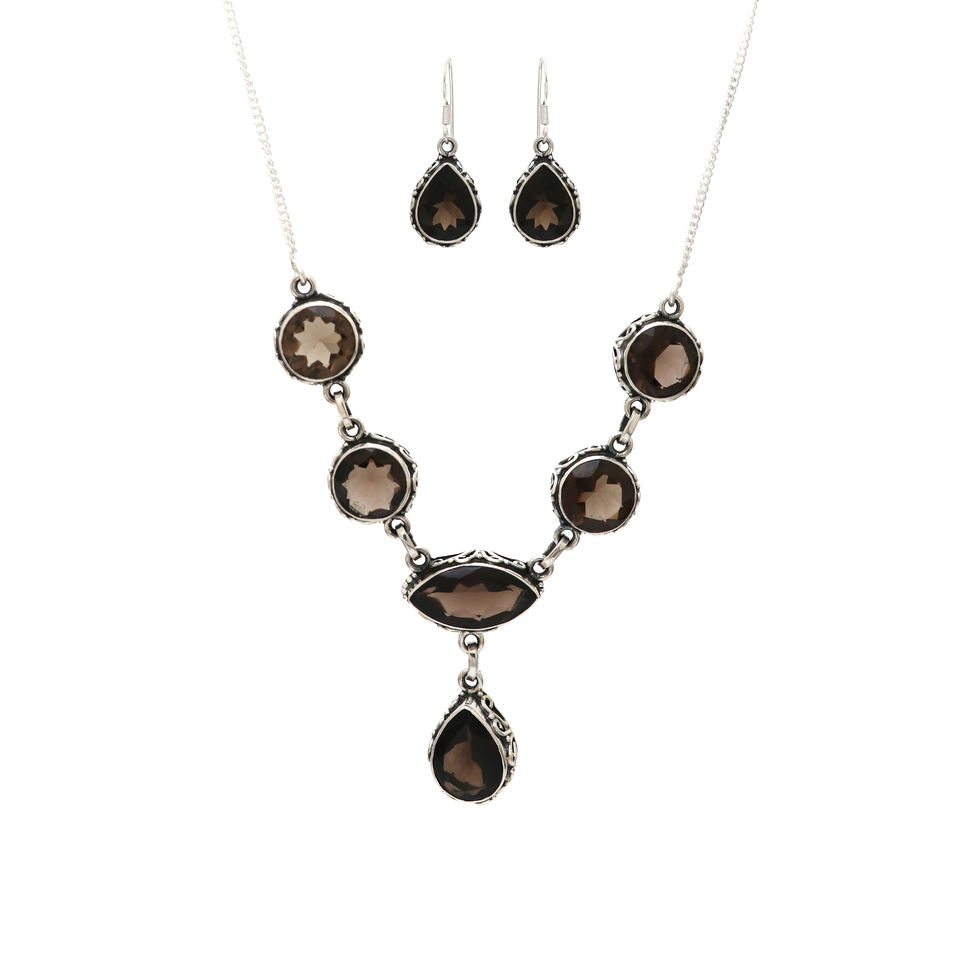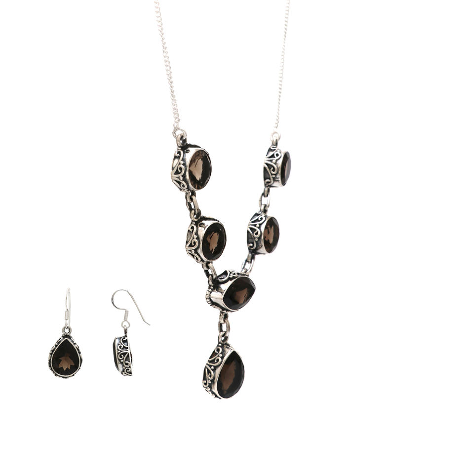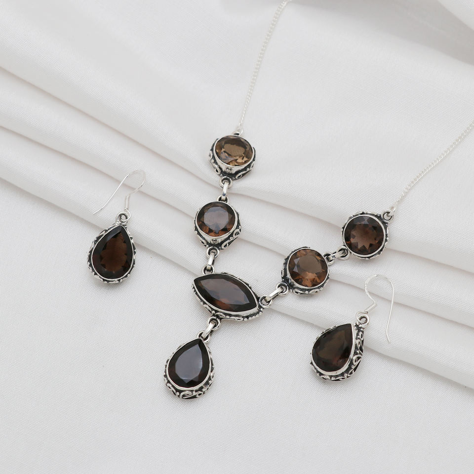 ชุดต่างหูสร้อยคอหินหกเหลี่ยมควอตซ์รมควอตซ์สําหรับผู้หญิงช่างออกแบบแฟชั่นแรงบันดาลใจขายส่งเครื่องประดับอัญมณีอินเดีย