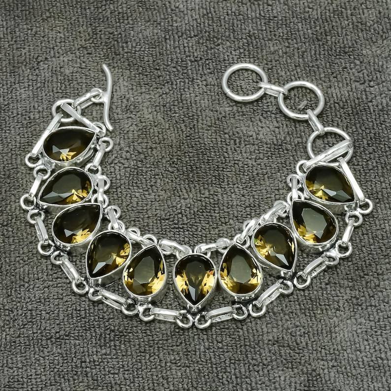 925 Sterling Silver Smoky Topaz Gemstone Bracelet Elegant Handmade Jewelry for Women-Perfect Party Gift for Mom Her Christian