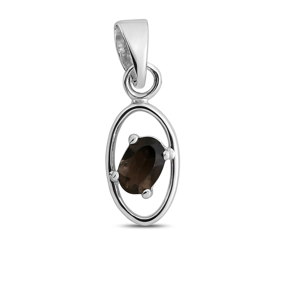 จี้รูปไข่โทแพซสโมคกี้ เงินแท้ 925 ชุบโรเดียม เครื่องประดับพลอยสีน้ำตาลธรรมชาติแบบมินิมอล ของขวัญจาก Rhaya Jewels รุ่น 81