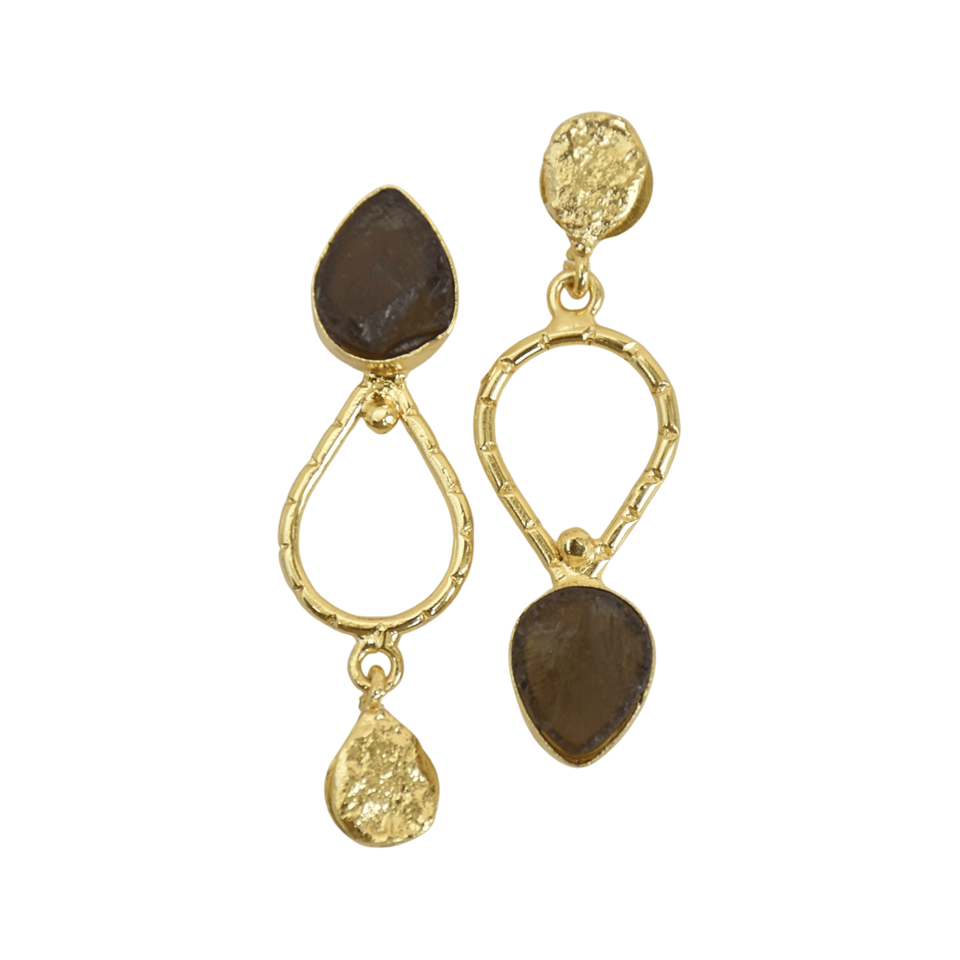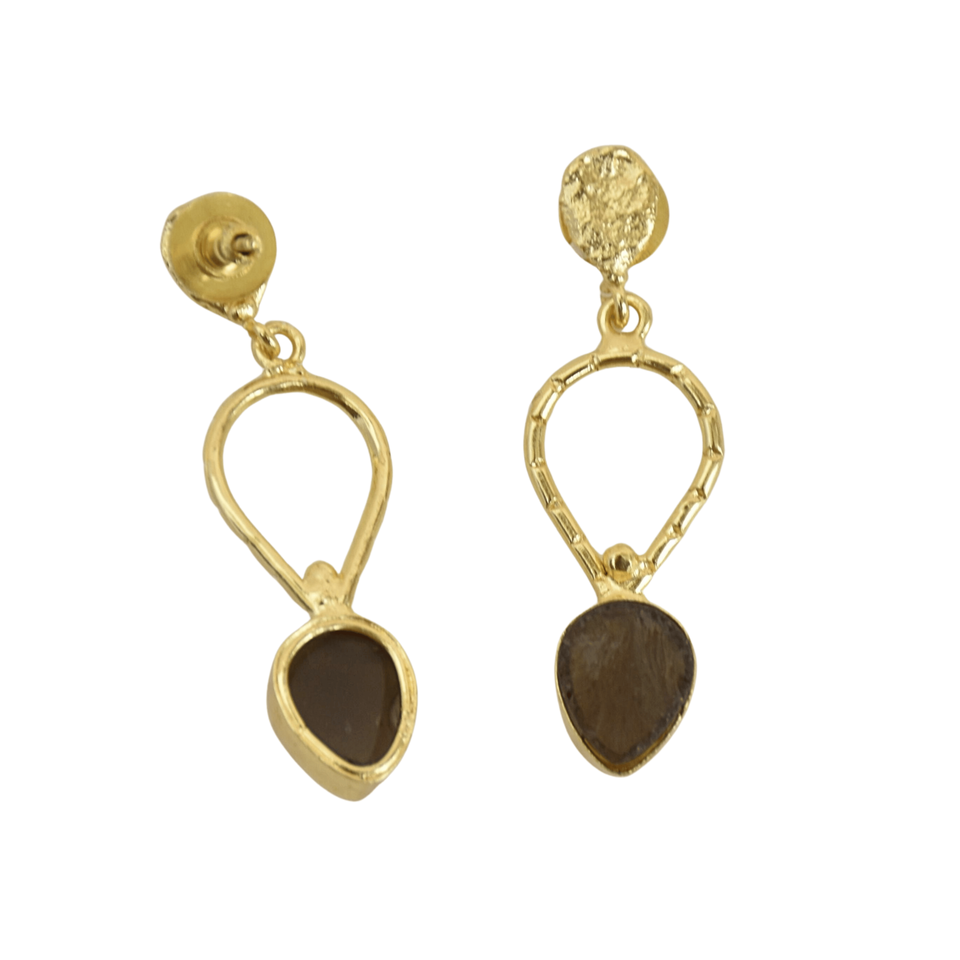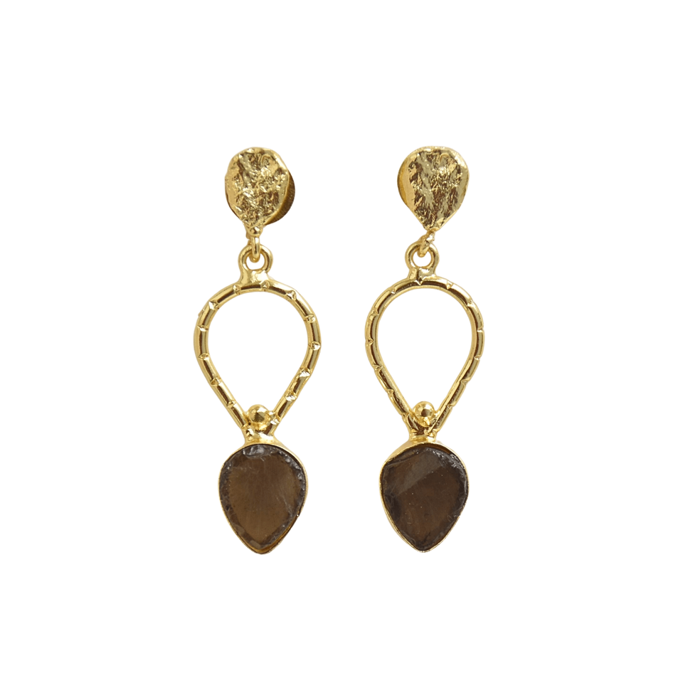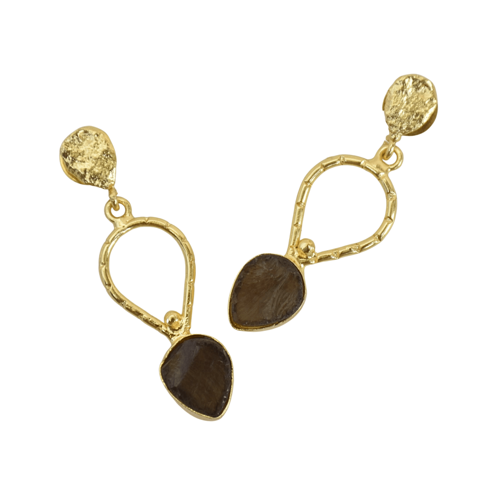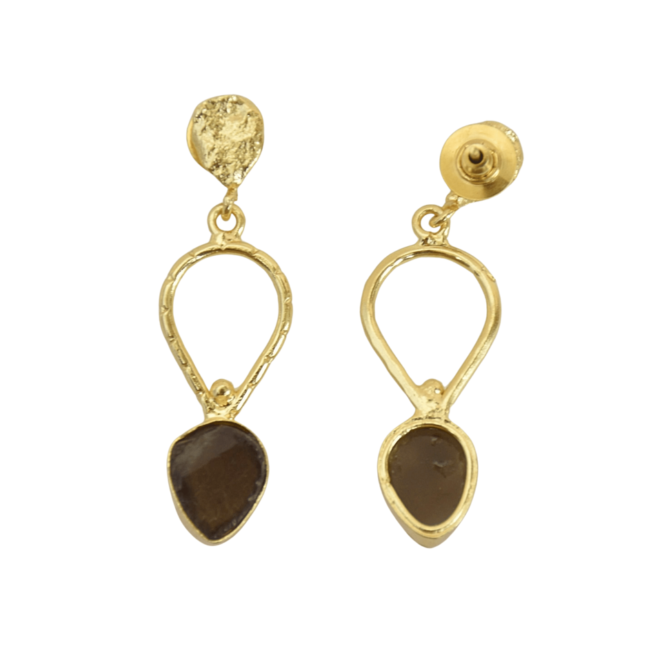 Natural Brass Drop Earrings Premium Genuine Healing Crystal 18K Gold Plated Finish Hypoallergenic Safe Wear High Quality