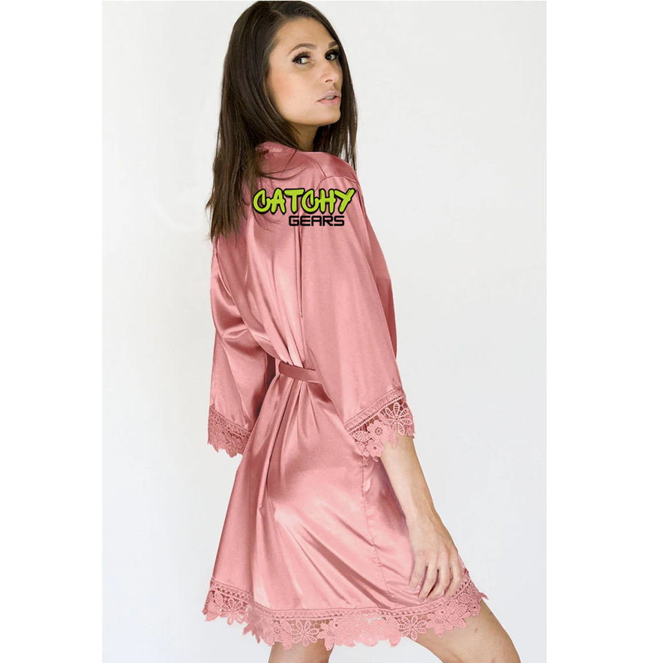 ชุดคลุมกิโมโนผ้าซาตินผ้าไหมสำหรับผู้หญิงผ้าซาตินประดับลูกไม้สำหรับเด็กผู้หญิงชุดคลุมสปาปาร์ตี้งานแต่งงานแบบเรียบและนุ่ม