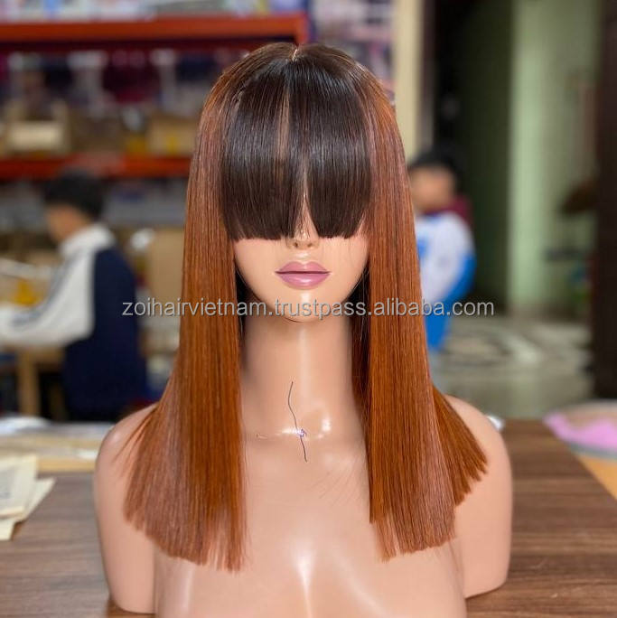 วิกผมตรงสลวยแบบผมมนุษย์แท้ วิกผมเวียดนามแบบติดลูกไม้ด้านหน้า วิกผมแบบไม่ต้องใช้กาวสำหรับผู้หญิงผิวสี