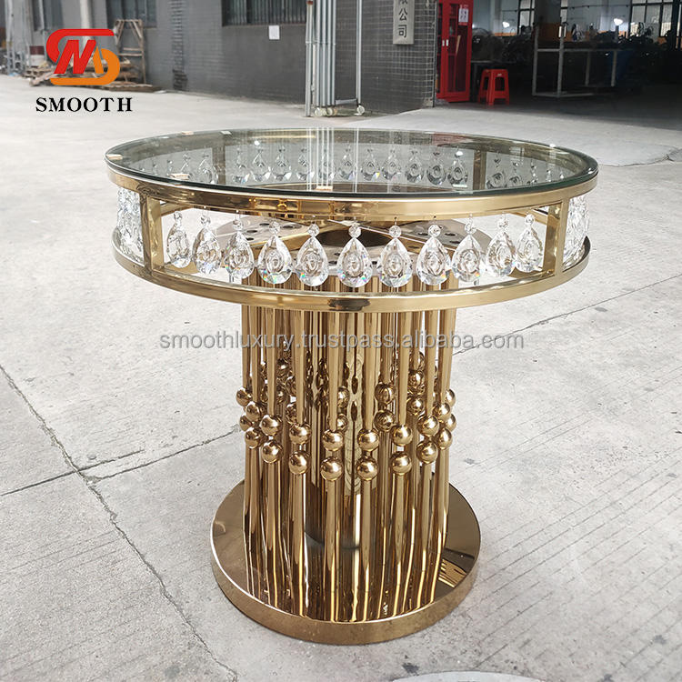 โต๊ะขนมงานแต่งทรงกลมทำจากสแตนเลสโต๊ะเค้กสีทองจัดงานแต่งงานหรูหราเรียบเนียน