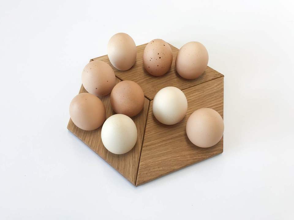 ชั้นวางไข่ไม้ผิวเรียบเนียน ออกแบบมาเพื่อการทำความสะอาดง่าย จับถนัดมือ และจัดวางได้อย่างสวยงาม