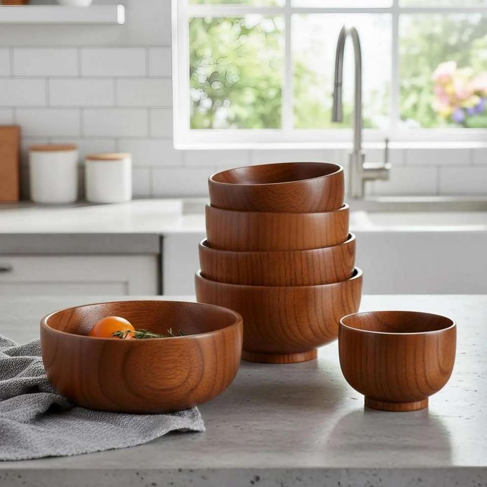 จานสลัดไม้เมเปิ้ลเรียบสำหรับผักสดผสมผลไม้และทำความสะอาดโต๊ะในบ้าน