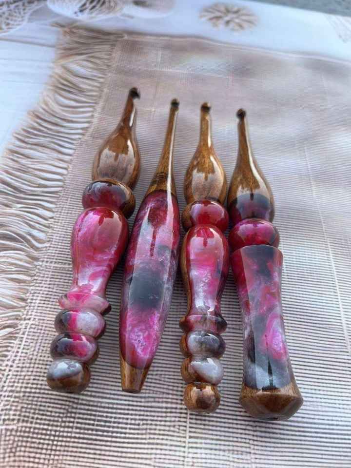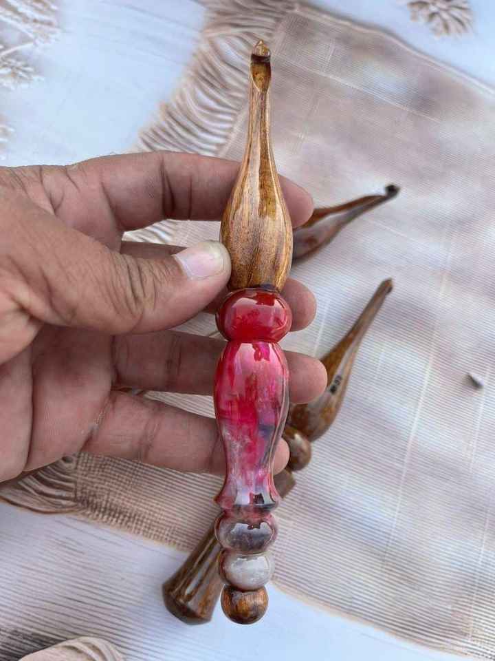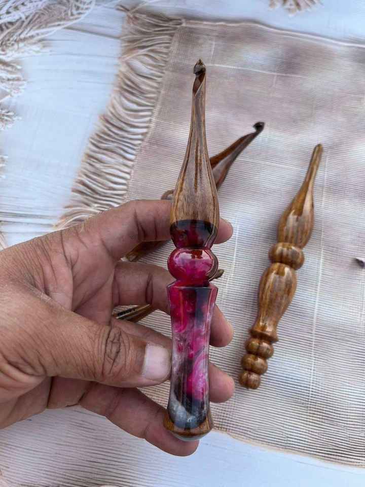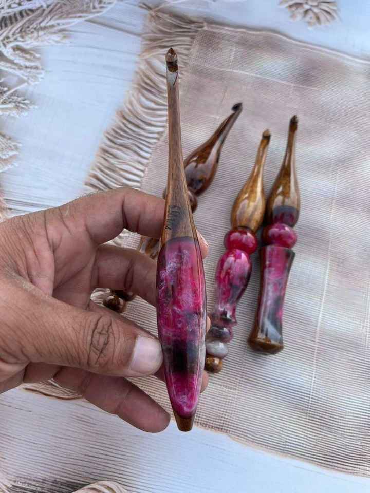 เรซิ่นเรียบเนียนและเข็มโครเชต์ไม้ ออกแบบตามหลักสรีรศาสตร์ น้ำหนักเบา ทนทาน สำหรับงานถักโครเชต์ งานฝีมือ DIY และงานประดิษฐ์