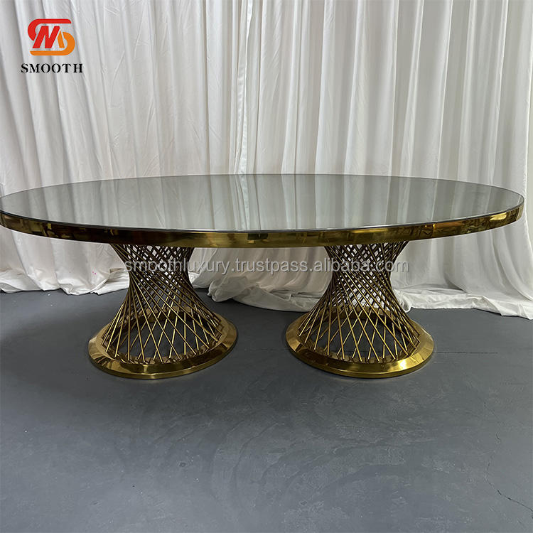 กระจกกลมเรียบโรแมนติกโต๊ะรับประทานอาหารสแตนเลสโต๊ะจัดเลี้ยงสำหรับห้องจัดงานแต่งงานเฟอร์นิเจอร์บ้าน