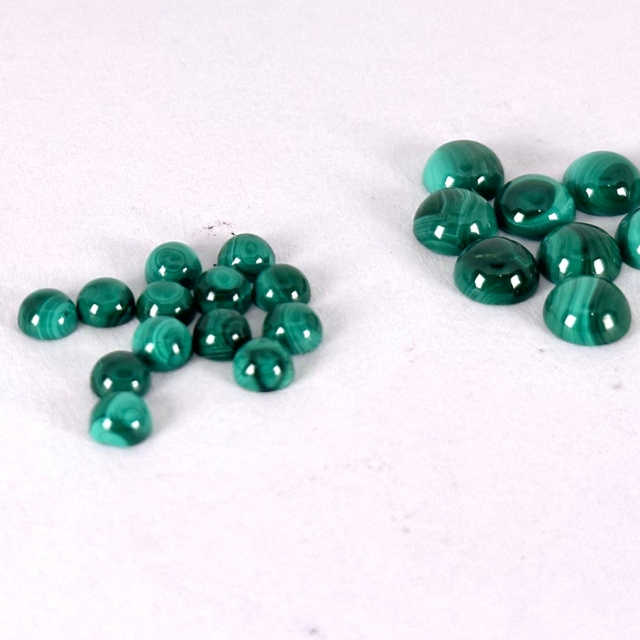 หินอัญมณีสีเขียวมรกตทรงกลมเรียบธรรมชาติพร้อมฐานแบน3ถึง8มม.