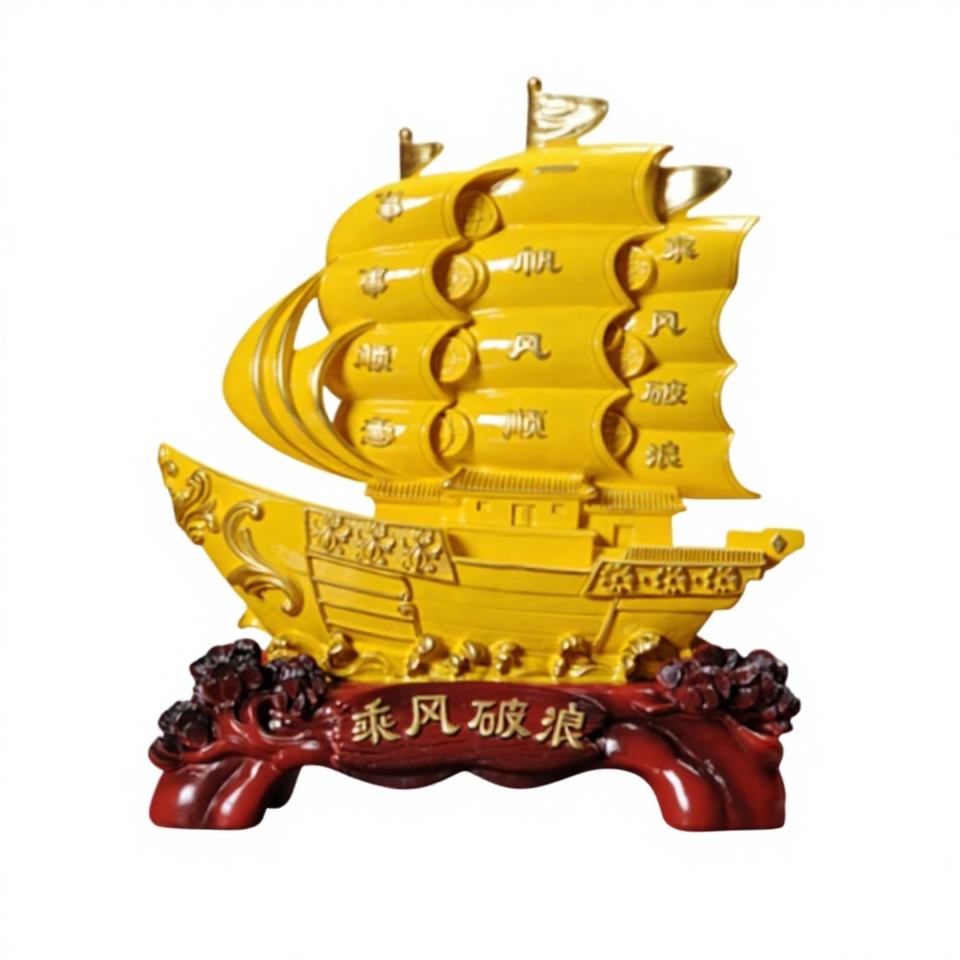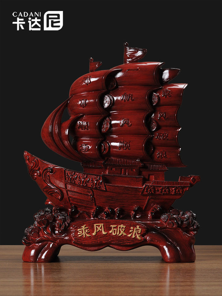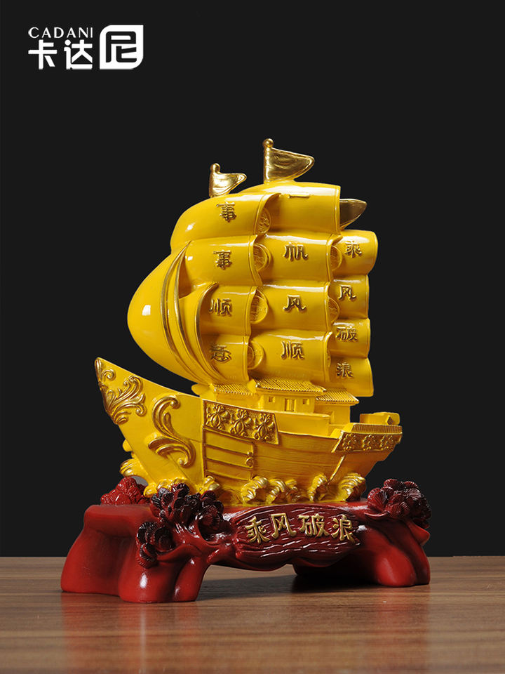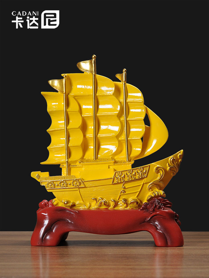 งานประติมากรรมเรซิ่นสไตล์ศิลปะพื้นบ้านลายเรือใบเรียบหรู ของตกแต่งตู้ไวน์เสริมมงคล ของสะสมสำหรับห้องนั่งเล่นหรือสำนักงาน บ้านใหม่