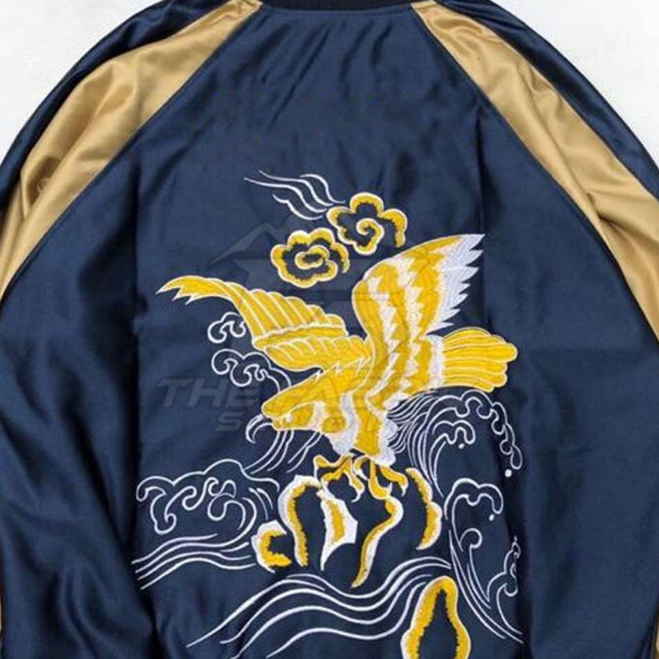 เสื้อแจ็คเก็ตซูกะจังผ้าซาตินเนื้อนุ่มสำหรับฤดูหนาว คอตั้ง พร้อมโลโก้ด้านหน้า ดีไซน์สั่งทำพิเศษ เย็บอย่างมีคุณภาพสูง