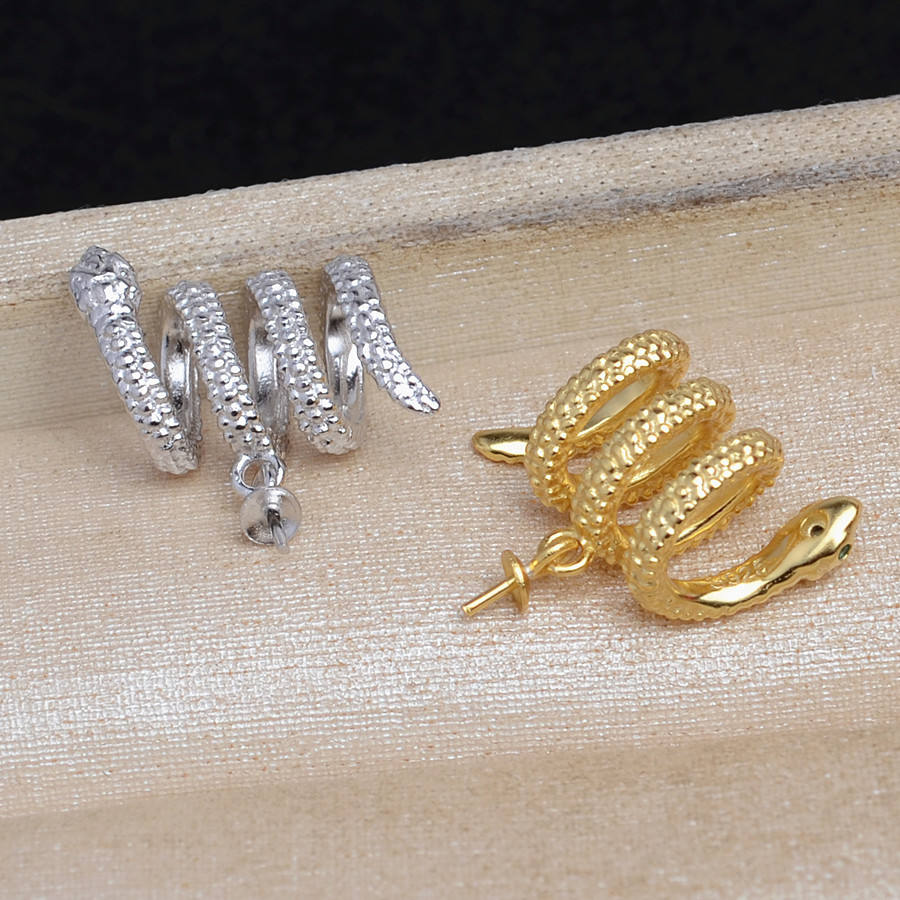 จี้รูปงูเรียบหรูพร้อมฐานกลวง อุปกรณ์ DIY สำหรับทำเครื่องประดับ เงินแท้ S925 พร้อมฐานไข่มุก 5792 สำหรับไข่มุกแบบหลวมตามราศี