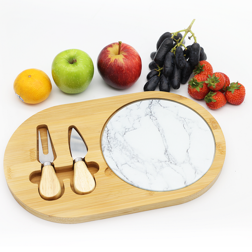 ชุดมีดหั่นชีสทำจากไม้ไผ่ใช้ซ้ำได้พื้นผิวเรียบพร้อมมีดหั่นชีสบอร์ดทำจากสแตนเลส
