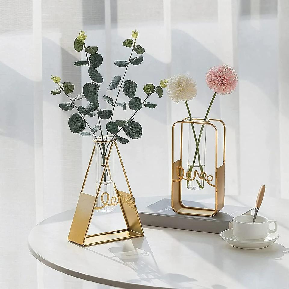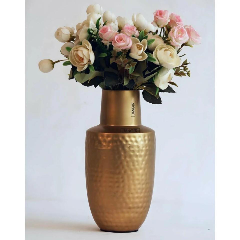แจกันดอกไม้โลหะพื้นผิวเรียบมีการตกแต่งสองสีที่สมบูรณ์แบบสำหรับการตกแต่งบ้านเทศกาลและชิ้นส่วนกลางที่หรูหรา