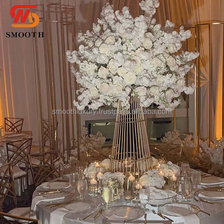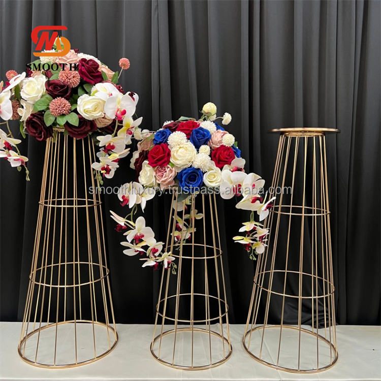 แท่นวางดอกไม้สีทองสำหรับตกแต่งงานแต่งงานแบบเรียบแท่นวางตรงกลางโต๊ะตกแต่งดอกไม้โลหะ