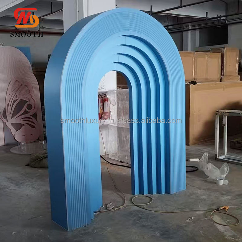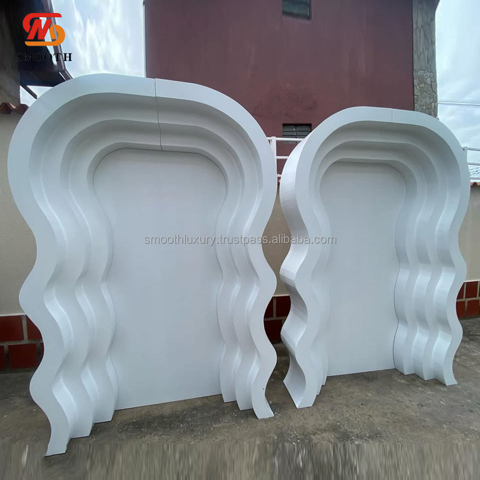 อุปกรณ์ตกแต่งงานแต่งงานอะคริลิคหลายชั้นแบบเรียบสีขาวแบบไม่สม่ำเสมอแผงฉากหลังแบบโค้งสไตล์เรียบง่าย